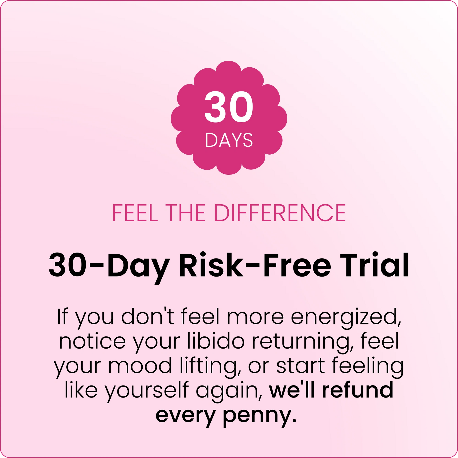 If you don't experience noticeable improvements in desire, energy, or mood within 30 days, simply return your order for a full refund, no questions asked.